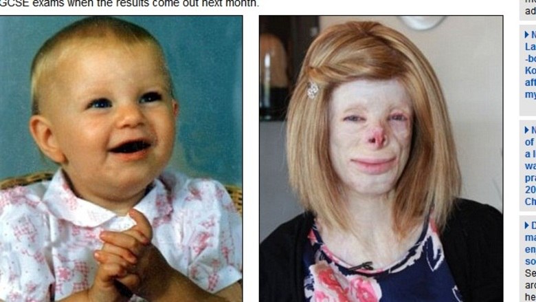 Terri já passou por mais de 50 cirurgias, mas vai precisar de enxertos de pele para o resto da vida. Para esconder a careca, a adolescente usa uma peruca loira.